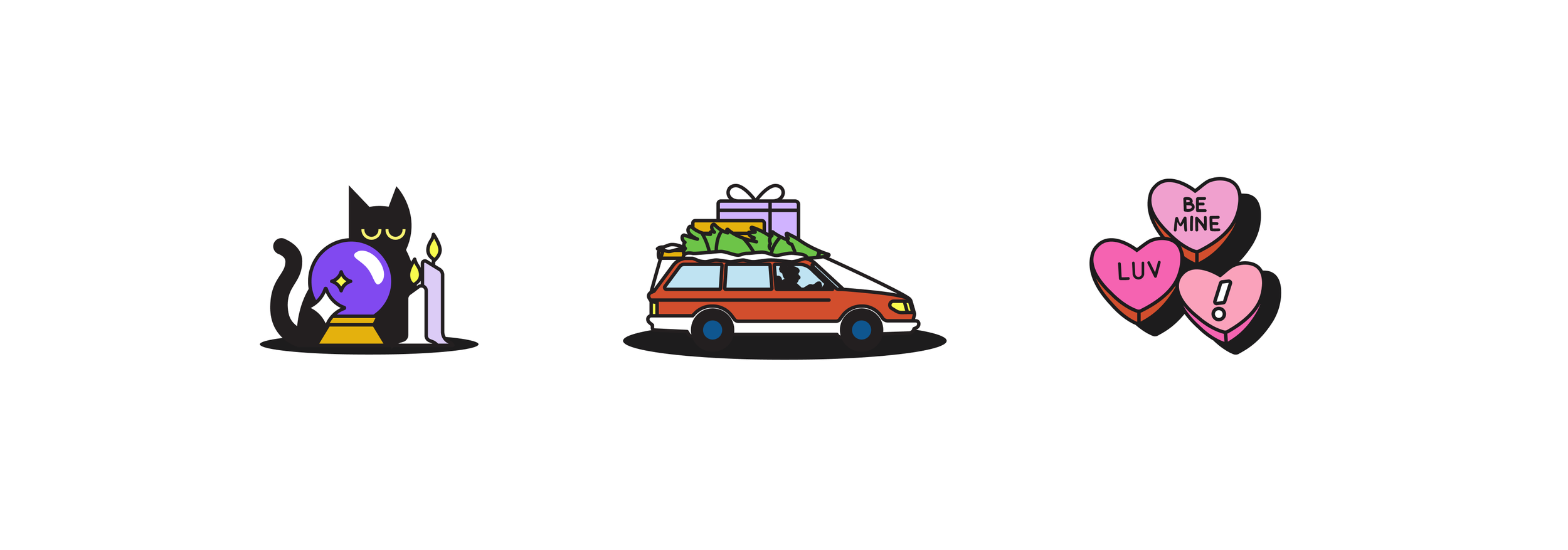 Seasonal pictograms that could be used on special days: Halloween, winter holidays, Valentine’s Day.